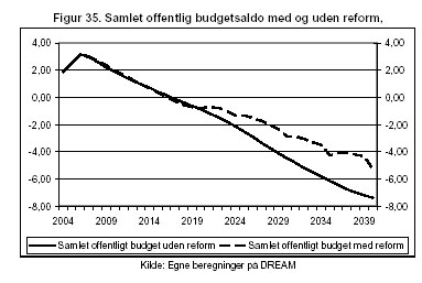 Der er dog en række usikkerheder knyttet til forudsigelserne om udviklingen i de offentlige udgifter, især om udgifter til sundhedssektoren. DREAM-gruppen giver et skøn over usikkerheden i såkaldte ”følsomhedsanalyser”. Marianne Frank Hansen, Lars Haagen Pedersen og Peter Stephensen: Danmarks fremtidige befolkning. Befolkningsfremskrivning 2006 www.dreammodel.dk/pdf/Befolkning2006.pdf Her anvendes en befolkningsfremskrivningsmodel, der består af differensligninger. Til beregning af dødelighed og forventet levetid anvendes Lee-Carter metoden |